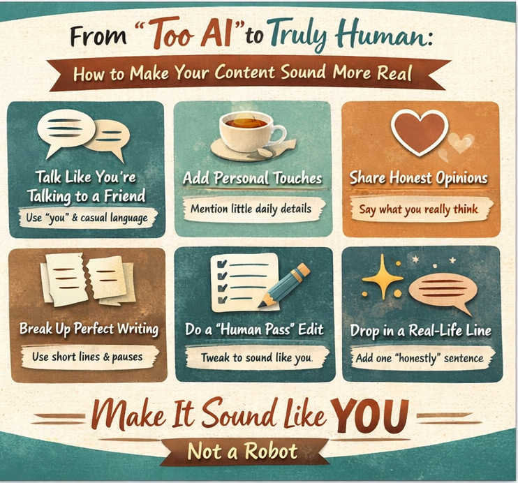 - Always Read It Back: This is a big one. After using AI, I always read through the post and ask: “Does this sound like me?” If it doesn’t—I tweak it until it does.